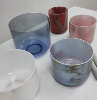 クリスタルボウルは叩いたりこすったりすると、耳には聴こえませんが、40000~50000Hzの振動・波動音が出ます。